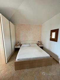 TRILO L'appartamento è completamente arredato, è situato al primo piano di una villetta composta da soli 3 appartamenti. Dispone di un'entrata indipendente con posto macchina privato, scala esterna e veranda. Comprende una stanza matrimoniale con armadio e poggiolo, una stanza con due letti e armadio, un bagno con finestra, una cucina completa con piano di cottura a gas, forno convenzionale, forno a microonde, colonna frigo-frezzer e lavastoviglie, oltre a un soggiorno con divano letto matrimoniale, angolo TV e porta finestra su una terrazza coperta e attrezzata con tavolo e sedie. È disponibile una riserva idrica da 2 000 litri. Tra i servizi inclusi ci sono l'aria condizionata, lavatrice, ferro e asse da stiro e televisione mentre la biancheria è esclusa. L'appartamento è situato in una zona tranquilla a pochi chilometri a sud di Olbia, nel paese di Murta Maria, punto centrale per raggiungere importanti località come la Costa Smeralda, Porto Cervo, San Teodoro, Porto San Paolo, Coda Cavallo, Budoni e La Caletta. Le spiagge più vicine sono Porto Istana e Marina Maria, distanti circa 1500 metri. Le distanze principali includono Olbia (8 km), l'aeroporto (7 km), il porto di Olbia (8 km) e un vasto centro commerciale (6 km), con supermercati, edicola, pizzerie, ristoranti, rosticcerie, pasticcerie, bar e negozi nelle vicinanze. Le attività nei dintorni includono il noleggio di sdraio, ombrelloni, imbarcazioni e pratiche come windsurf, vela, pesca, canoa, immersioni, mountain bike, escursioni e gite in barca. Le chiavi vengono consegnate alle 14:00 del giorno di arrivo e ritirate alle 10:00 del giorno di partenza, salvo accordi diversi. I servizi inclusi nel prezzo sono acqua, luce, gas e pulizie finali, con l'obbligo di riconsegnare l'angolo cottura pulito.