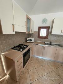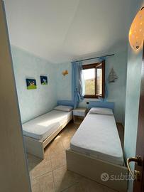 L'appartamento è completamente arredato, è situato al primo piano di una villetta composta da soli 3 appartamenti. Dispone di un'entrata indipendente con posto macchina privato, scala esterna e veranda. Comprende una stanza matrimoniale con armadio e poggiolo, una stanza con due letti e armadio, un bagno con finestra, una cucina completa con piano di cottura a gas, forno convenzionale, forno a microonde, colonna frigo-frezzer e lavastoviglie, oltre a un soggiorno con divano letto matrimoniale, angolo TV e porta finestra su una terrazza coperta e attrezzata con tavolo e sedie. È disponibile una riserva idrica da 2 000 litri. Tra i servizi inclusi ci sono l'aria condizionata, lavatrice, ferro e asse da stiro e televisione mentre la biancheria è esclusa. L'appartamento è situato in una zona tranquilla a pochi chilometri a sud di Olbia, nel paese di Murta Maria, punto centrale per raggiungere importanti località come la Costa Smeralda, Porto Cervo, San Teodoro, Porto San Paolo, Coda Cavallo, Budoni e La Caletta. Le spiagge più vicine sono Porto Istana e Marina Maria, distanti circa 1500 metri. Le distanze principali includono Olbia (8 km), l'aeroporto (7 km), il porto di Olbia (8 km) e un vasto centro commerciale (6 km), con supermercati, edicola, pizzerie, ristoranti, rosticcerie, pasticcerie, bar e negozi nelle vicinanze. Le attività nei dintorni includono il noleggio di sdraio, ombrelloni, imbarcazioni e pratiche come windsurf, vela, pesca, canoa, immersioni, mountain bike, escursioni e gite in barca. Le chiavi vengono consegnate alle 14:00 del giorno di arrivo e ritirate alle 10:00 del giorno di partenza, salvo accordi diversi. I servizi inclusi nel prezzo sono acqua, luce, gas e pulizie finali, con l'obbligo di riconsegnare l'angolo cottura pulito.