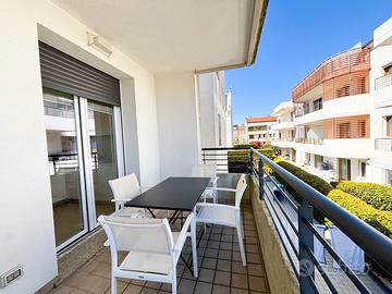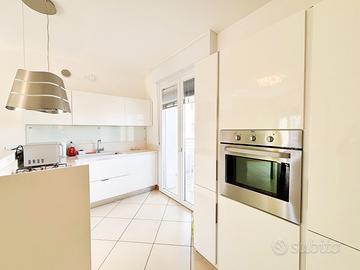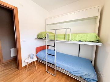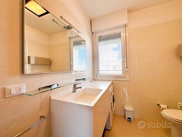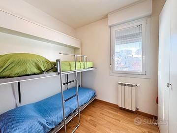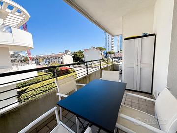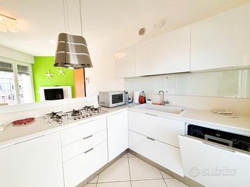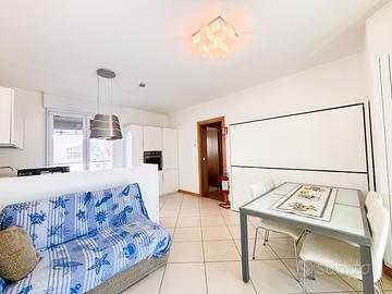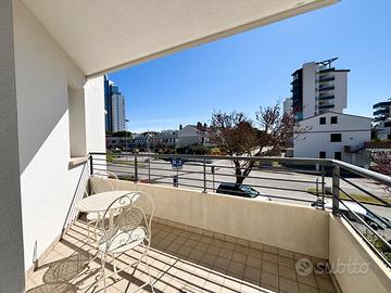 Proponiamo in locazione turistica elegante appartamento situato a soli 200 metri dalla spiaggia, in posizione centrale, nella rinomata Piazza Drago. L'unità immobiliare, posta al piano primo e servita da ascensore, si distingue per gli spazi ampi e ben distribuiti. La zona giorno è composta da un luminoso soggiorno con cucina a isola completamente attrezzata, dotata di lavastoviglie, piano cottura a gas, forno e freezer. Il soggiorno è arredato con divano e dispone di due pratici letti a scomparsa. La zona notte comprende una camera matrimoniale e una cameretta con letto a castello. Il bagno, completo e funzionale, è dotato di box doccia e lavatrice. L'immobile è inoltre provvisto di impianto di aria condizionata e di tre ampi terrazzini, ideali per pranzi e cene all'aperto. Completa la proprietà un garage privato, comodamente accessibile tramite ascensore. Posto spiaggia incluso nel prezzo (secondo preventivo). Capacità massima: 6 persone. Dati identificativi: CIR: 027019-LOC-11681 CIN: IT027019B4B2D97PCW Classe energetica: D - EPgl,ren 131,05 kWh/m² anno C.I.: 63186/2023
