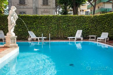 Bell'appartamento trilocale di 45 mq, 6 posti letto massimo, per vacanze a Riccione a 150 mt dal mare. L'appartamento si trova presso Residenza Villa Lidia, struttura dei primi del '900, rinnovata di recente; il giardino della struttura ospita una piscina con area relax con lettini.