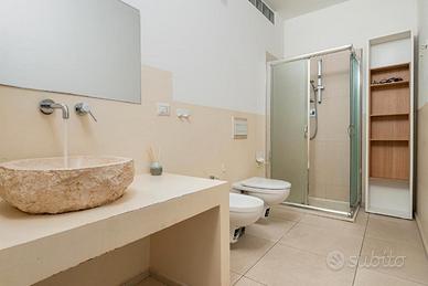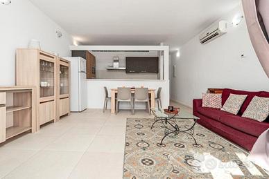 Ampio trilocale, a pochi passi dall'acqua, composto da: un soggiorno con cucina a vista, due camere, due bagni.