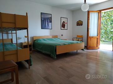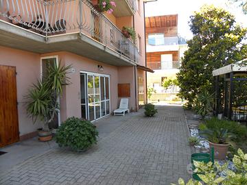 Affittasi trilocale fino a 5 posti letto a piano terra in palazzina con giardino comune a 500mt dal mare in zona Tagliata/inizio Pinarella. L'appartamento è composto da ampia cucina-tinello, due camere da letto, rispettivamente da 4 posti letto (letto matrimoniale più letto a castello) e da 3 posti letto (letto matrimoniale più letto singolo), bagno. Parcheggio privato, TV e Wi-Fi , possibilità di utilizzo lavatrice in spazio comune.