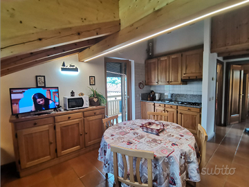 Al secondo ed ultimo piano con legno a vista e arredato in stile tipico alpino, l'appartamento si compone di 2 camera da letto, bagno con doccia, soggiorno con divano, angolo cottura.