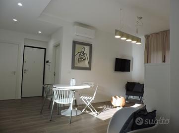 In pieno centro di Letojanni, inserito in una delle più caratteristiche vie del paese, a soli 50 mt . dalla spiaggia, proponiamo in affitto transitorio (da Ottobre a Maggio) un luminoso bilocale appena ristrutturato, con ottime finiture, all'interno di in un'elegante palazzina di sole 4 unità abitative. La casa è così articolata: ingresso in disimpegno dal quale si accede direttamente alla zona living dotata di condizionatore, balcone con vista mare ed attrezzata con un funzionale angolo cottura. La cucina è moderna , con piano cottura a induzione. Dal living si accede ad un comodo ripostiglio/cabina armadio con ampia finestra e ad una lavanderia attrezzata con lavatrice e lavatoio. Una porta scorrevole separa la zona giorno dalla zona notte che è così composta: spaziosa camera da letto matrimoniale con accesso al balcone con vista mare, attacco TV ed aria condizionata; ampio bagno finestrato con finiture di pregio e comoda doccia completa di seduta realizzata in muratura. La casa si presenta ben illuminata grazie alla doppia esposizione ed è dotata di impianto fotovoltaico, videocitofono, infissi di ultima generazione e portone blindato. Nel periodo compreso da Giugno a Settembre l'appartamento è disponibile per locazione turistica. Da Ottobre a Maggio l'appartamento è disponibile per affitti transitori. Per informazioni chiamare al cellulare o scrivete un messaggio.