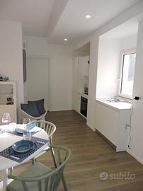 In pieno centro di Letojanni, inserito in una delle più caratteristiche vie del paese, a soli 50 mt . dalla spiaggia, proponiamo in affitto transitorio (da Ottobre a Maggio) un luminoso bilocale appena ristrutturato, con ottime finiture, all'interno di in un'elegante palazzina di sole 4 unità abitative. La casa è così articolata: ingresso in disimpegno dal quale si accede direttamente alla zona living dotata di condizionatore, balcone con vista mare ed attrezzata con un funzionale angolo cottura. La cucina è moderna , con piano cottura a induzione. Dal living si accede ad un comodo ripostiglio/cabina armadio con ampia finestra e ad una lavanderia attrezzata con lavatrice e lavatoio. Una porta scorrevole separa la zona giorno dalla zona notte che è così composta: spaziosa camera da letto matrimoniale con accesso al balcone con vista mare, attacco TV ed aria condizionata; ampio bagno finestrato con finiture di pregio e comoda doccia completa di seduta realizzata in muratura. La casa si presenta ben illuminata grazie alla doppia esposizione ed è dotata di impianto fotovoltaico, videocitofono, infissi di ultima generazione e portone blindato. Nel periodo compreso da Giugno a Settembre l'appartamento è disponibile per locazione turistica. Da Ottobre a Maggio l'appartamento è disponibile per affitti transitori. Per informazioni chiamare al cellulare o scrivete un messaggio.