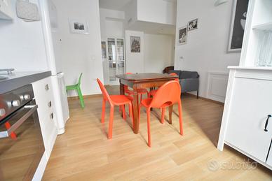 Questo spazioso appartamento rappresenta la scelta perfetta per chi desidera un equilibrio ottimale tra comfort e spazio funzionale. La zona giorno è dotata di un' angolo cottura molto ben attrezzato, mentre la zona notte offre due camere da letto matrimoniali luminose, bagno completo di doccia. La dotazione comprende Smart TV e WiFi ad alta velocità, perfetto per lavorare in modo fluido e senza interruzioni, rendendo il tuo soggiorno ideale anche per esigenze professionali, inoltre il doppio balcone e l'aria condizionata centralizzata presente in tutti gli ambienti garantisce un clima perfetto in ogni stagione. L'alloggio è allestito con biancheria certificata.