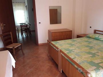 Bilocale composto da soggiorno/angolo cottura, bagno e camera da letto con aria condizionata. Esterno con posto auto privato e giardino con barbecue tutto a partire da 100€ a sett. x persona. Appartamento a due passi dal mare e ad 1Km da Tropea.