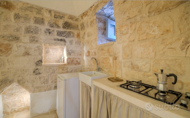Affitto trulli antichi ristrutturati dal mese di maggio 2026 per lunghi periodi 15/30 giorni, immersi nella splendida campagna della Valle d'Itria tra ulivi, muretti a secco per una vacanza in totale relax. Camera doppia con possibilità di aggiunta poltrona letto.