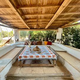 Casa vacanze "Capurre" è un caratteristico casale di campagna, un complesso di trulli e "pajare" di recente ristrutturazione. Mantenendo le sue linee originarie, la struttura si sposa in perfetta armonia con il paesaggio circostante, una vasta area (2 ettari) di macchia mediterranea dove pini d'aleppo, un frutteto di melagrane, un orto botanico e un vivaio di palme le fanno da cornice. Situato in posizione strategica, alle porte del Parco naturale di Punta Pizzo, a soli 400 mt dal mare, con calette di scoglio basso e a meno di un kilometro dai primi lidi di Gallipoli (Cotriero, Lido Pizzo, Punta della Suina). Nell'ampio giardino attrezzato si può godere di tutti i comfort: caminetto esterno in pietra leccese per grigliate e mangiate all'aperto, area relax con comode sedute, divani, sdraio, amache e grandi cuscini..., docce esterne e parcheggio privato. Il casale è composto da tre strutture tutte arredate in stile mediterraneo: due al piano terra (il "Trullo" e la "Pajara") ed uno al piano rialzato (la "Terrazza"). Il "Trullo" è composto da ingresso, camera con letto matrimoniale, bagno, angolo riposo, ampio salone-cucina con letto matrimoniale, dotato di tv e altri comfort. La "Pajara" e la "Terrazza" sono composte da camera con letto matrimoniale, bagno in camera, angolo cottura, tv e aria condizionata. Tutte e tre le unità abitative hanno ingressi indipendenti, sono attrezzate con ombreggianti, tavoli e sedie per mangiare e rilassarsi all'aperto. Bici sono a disposizione gratuita degli ospiti, per chi desidera vivere in tranquillità il territorio, apprezzando in pieno la bellezza del paesaggio di punta pizzo. Prezzi a partire da € 350 a settimana.