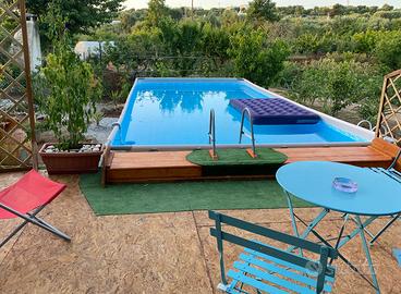 La casa dispone di patio esterno ombreggiato con tavolo da giardino sedie e divanetti e piscina ad uso esclusivo degli ospiti