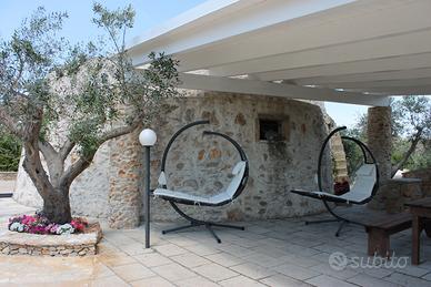 Situata nel cuore del Salento, Villa Romano offre un trullo immerso nel verde, ideali per chi desidera trascorrere vacanze rilassanti a pochi minuti dalle spiagge di Gallipoli. Si affitta settimanalmente (da sabato a sabato) fantastico trullo completamente indipendente in agro di Gallipoli a pochi minuti dalle migliori spiagge di Gallipoli, con ampio giardino esterno e composto da 2 camere da letto ognuna con letto matrimoniale e divano letto per un ulteriore posto (per un totale di 6 posti letto), 1 bagno e cucina/living room. Esternamente Terrazza con camino per barbecue estivi, docce e ampio parcheggio. Pensati per chi cerca comfort, tranquillità e una posizione strategica per scoprire il mare e le tradizioni salentine. A pochi passi dalle migliori spiagge di Gallipoli, Baia Verde e Punta della Suina, Villa Romano si colloca in posizione strategica a ridosso della principale arteria stradale salentina che collega Lecce con S.Maria di Leuca. Permette di raggiungere in pochi minuti le spiagge di Gallipoli, Mancaversa, Torre Suda, Torre San Giovanni, Pescoluse e Leuca e Lecce città, con le sue bellezze barocche. Giugno 1.000 €/sett Luglio 1.300 €/sett Agosto 1.500-1.800 €/sett Settembre 1.000 €/sett