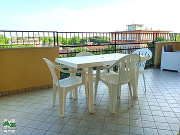 A mt.80 dal mare e pineta. Appartamento n° 8, a Zadina di Cesenatico, al V piano nel condominio Cesena composto da sala da pranzo, angolo cottura, camera da letto (4 posti letto), bagno e terrazzo (possibilità di mangiare all'esterno). L' appartamento è dotato di climatizzatore, lavatrice e tv. Piccolo ripostiglio al piano terra. Ascensore e posto auto condominiale. Classe energetica non determinabile. CIR:040008-CV-00042 CIN:IT040008B4DOTA2G2J