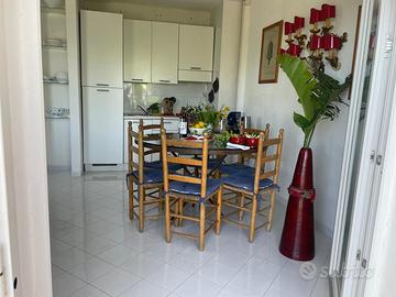 L'appartamento è composto da un salone living, con angolo cottura, con due divano letto della prestigiosa azienda Campeggi, due camere da letto, un bagno ed un corridoio.