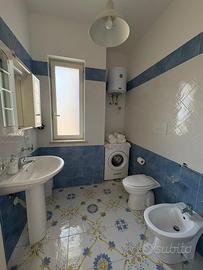 Il bagno, elegante e funzionale, è fornito di tutti i comfort moderni, per farvi sentire a casa anche in vacanza. Inoltre, l'appartamento è dotato di aria condizionata e posto auto, per rendere il vostro soggiorno ancora più semplice e piacevole.