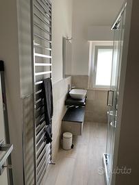 Bagno con box doccia con lavatrice.