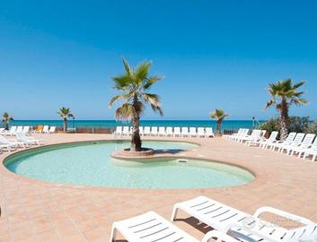 Trilocale , sei posti letto,una camera da letto matrimoniale , una camera da letto con due letti a castello, soggiorno / cucina con divano letto. aria condizionata, veranda , spiaggia attrezzata, due piscine, animazione in anfiteatro , campi vari sport, ristorante, trattoria , market, confort e tanto altro ancora.