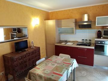 Ingresso con cucina completa di frigorifero, freezer, forno, microonde, macchina caffè e cappuccini, fuoco a induzione.Ulteriore tavolo con sedie x interno e divano relax con TV.