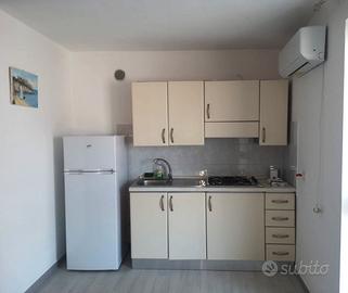 L'appartamento è ubicato al piano rialzato. Esso è un ampio bilocale, composto da cucina-soggiorno con divano-letto matrimoniale, bagno con box-doccia, camera da letto e due verandine. La casa è distante dal paese (Vieste) 2 km e dalla prima spiaggia (Lido san Lorenzo) 350 m, nelle vicinanze è presente un supermercato (500 m) e il panificio (350 m). Nel prezzo sono compresi i consumi di luce, acqua, gas, posto- auto, aria condizionata ad eccezione della tassa di soggiorno ? 2,50 a persona (giornaliere).