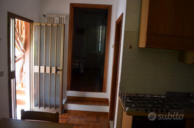 Nell'appartamento è presente un bagno con box doccia e dalla cucina in cui è presente anche la lavatrice.