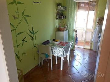 * 4 camere con: sala (con pala al soffitto), cucina, camera matrimoniale grande (con aria condizionata e pala al soffitto) + camera con 2 letti singoli o uno matrimoniale (con pala al soffitto), ampio bagno e balcone di 10 mt vista mare, secondo balcone verandato.