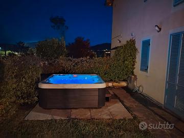 Appartamento indipendente al piano terra di nuova costruzione con vasca idromassaggio esterna privata. Completamente arredato a nuovo, dotato di impianto d'aria condizionata, comprende una zona cucina completamente attrezzata con tutto il necessario per cucinare e completa di forno, piano cottura, macchina caffè Nespresso, frigo con freezer, lavastoviglie, lavatrice. Nel soggiorno è presente un comodo divano letto matrimoniale ed una smart-tv. La zona notte comprende un bagno con doccia, una camera matrimoniale ed una cameretta. Inoltre è dotato di due giardini privati esclusivi e completamente recintati e posto auto coperto. Perugia, Castiglione del Lago, Città della Pieve, Panicale, Paciano, Assisi, Orvieto, Gubbio, Cortona.