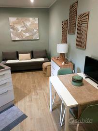 Venere è un delizioso monolocale, nuovo di ristrutturazione, dotato di ogni comfort ed accessorio, composto da soggiorno con divano letto matrimoniale, isola cucina ben atrezzata, ampio box doccia, antibagno e servizi igienici.
