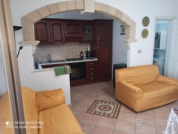 L'appartamento è così composto: da n. 2 camera da letto matrimoniali, n. 1 cucina, n. 1 soggiorno, n. 1 bagno ed un ampio parcheggio esterno con possibilità di grigliate serali (tutti confort disponibili: climatizzatore, lavatrice, microonde, zanzariere ecc).
