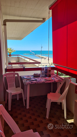 BALCONE ABITABILE VISTA MARE CON TENDE PARASOLE, TAVOLO e SEDIE.