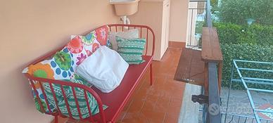 Affittasi Appartamento a Mazzanta (Li) composto da, soggiorno/cucina con divano letto, camera con letto matrimoniale e letto a castello, bagno con servizi e doccia. Due terrazzi, uno sul davanti con tenda ombreggiante ed uno sul retro molto fresco anche nelle giornate più calde. La casa è dotata di lavatrice e lavastoviglie. a 200 mt dal mare e ampia pineta per passeggiate o gite in bici. possibilità sia di spiaggia libera che attrezza.Possibilità anche di spiaggia attrezzata per cani( bau-beach)