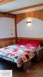 Appartamento predisposto per accogliere due persone in camera da letto (più letto culla o brandina) e due persone nell'ampio divano che si trasforma semplicemente in vero letto già pronto.