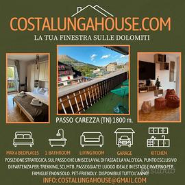APERTA LA STAGIONE PRIMAVERA ESTATE 2026! CostaLungaHouse (con due grandi balconi abitabili e giardino esterno), sul Passo Costalunga e Carezza, a 1.800 metri di altitudine, immerso nel verde dell'area di Carezza, sul passo che unisce la Val di Fassa e la Val d'Ega. Direttamente sugli impianti sci di CarezzaSKI Pra di Tori e Hubertus (si esce di casa e si sale sulla seggiovia) e a 15 minuti a piedi, dal Lago di Carezza, con le finestre di fronte alle Dolomiti, sulle vette del Latemar e Rosengarten/Catinaccio (quello che al tramonto diventa rosa). Davanti l'appartamento, c'è una fermata del bus con direzione Bolzano, dove in 5 minuti siete a Nova Levante (BZ) e in 40 minuti alla stazione di Bolzano. Direzione Val di Fassa, in 10 minuti siete a Vigo di Fassa. Servizi da SKYBUS. MAX 6 posti letto, BOX AUTO interrato sotto l'appartamento e parcheggio esterno. AMPIO soggiorno luminoso e vivibile, con divano letto matrimoniale, TV 55 pollici, lettore DVD e CD e giochi da tavola. GRANDE camera con letto matrimoniale e due letti a castello, con TV e grande armadio. CUCINA attrezzata di tutto: frigo, forno, forno a microonde, tostapane, bollitore, Nespresso a cialde, tisane e the. In dotazione piatti, bicchieri, posate, pentole e tegami Lagostina. BAGNO finestrato con vasca, lavatrice, aspirapolvere e asciugacapelli. A disposizione degli ospiti, delicati e profumati prodotti per l'igiene personale. DOPPIA esposizione con DOPPI balconi abitabili, con vista sul LATEMAR e ROSENGARTEN. Primo piano senza ascensore. Animali di piccola taglia, sono benvenuti. Convenzionati con il negozio sotto l'appartamento, per il noleggio di attrezzature sportive