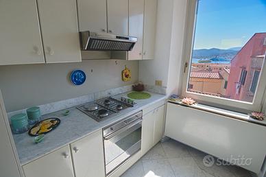 L'appartamento, elegantemente arredato, dispone di un ampio salone con zona pranzo e grandi finestre vista mare, cucina attrezzata, una camera matrimoniale con bagno en suite con doccia, una camera doppia e una singola, bagno con doccia. A pochi metri di distanza un dehors attrezzato per piacevoli momenti di relax con vista sul golfo. In circa 5 minuti a piedi si raggiunge la spiaggia de Le Viste.