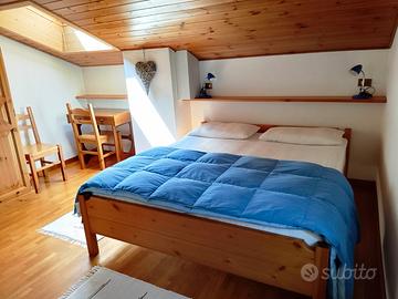 In località Premadio, a due chilometri dal centro di Bormio e a pochi minuti a piedi dai centri termali dei Bagni Nuovi e Bagni Vecchi, in posizione soleggiata e tranquilla, disponibilità in villetta bifamiliare di appartamento monolocale in piano terra e quadrilocale al piano primo, entrambi con ingresso indipendente.