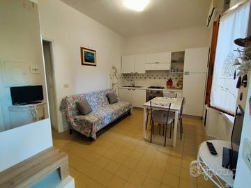 Ginestra 22 - Piano terra con doppio spazio esterno a circa 40mt. dalla spiaggia, appartamento composto di ingresso salotto con zona cottura e divano letto singolo, camera da letto matrimoniale, bagno con box doccia.