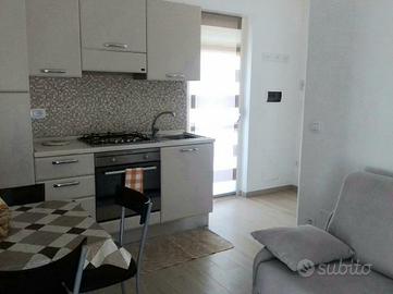 L'appartamento (35 mq - max 2 adulti e 1/2 bimbi), arredato molto elegantemente e con mobili nuovissimi, è composto da un'accogliente living con zona cottura e divano letto ad una piazza e mezzo, ampia camera da letto matrimoniale, stanza da bagno con comodo box doccia in cristallo, ampio terrazzo panoramico attrezzato con porticato ombreggiato, tavolo, e sedie da esterno (per gustare, anche all'aperto, i nostri sapori) e dotato anche di una splendida zona solarium (nuovissimi lettini prendisole e tavolini) per prendere il sole e rilassarsi anche a casa