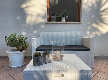 divanetto per serate all'aperto oltre ad una verandina attrezzata con tavolo e sedie per serate all'aperto.