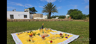 La villa principale offre spazi luminosi e finiture di pregio. All'esterno, un curato giardino mediterraneo rende la proprietà un luogo perfetto per vivere la Puglia in compagnia a due passi dal mare