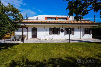 2 camere da letto con 2 bagni privati, 2 saloni, cucina e ampio giardino con gazebo e barbeque.