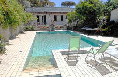 Forio affitto solo il mese di settembre, villa in parco privato con ampi giardini, parcheggio e piscina, la villa è situata a 5 minuti a piedi dalla spiaggia della Chiaia e a 15 dal porto e centro storico di Forio, formata da un piano rialzato di 95 mq. con ampio patio coperto all'ingresso, un secondo terrazzino sul lato posteriore, 2 stanze da letto matrimoniali con aria condizionata, una stanzetta con posti 2 letto, ampio salone e cucina attrezzata, 2 bagni, terrazzo solarium panoramico.
