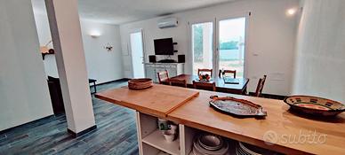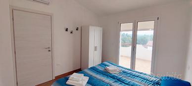 Nuova costruzione con ampia zona giorno, tre stanze, due bagni e ampio giardino, WiFi, Smart TV, lavatrice, lavastoviglie, climatizzatori in tutti i locali e completamente corredata. Dispone di due balconi e spazio esterno per mangiare. Molto comoda per 6 persone, può ospitarne fino a 9. Parcheggio privato all'interno della proprietà. La spiaggia più vicina è a 400 metri, la zona è ricca di spiagge e località da visitare. Negozi e ristoranti raggiungibili a piedi.
