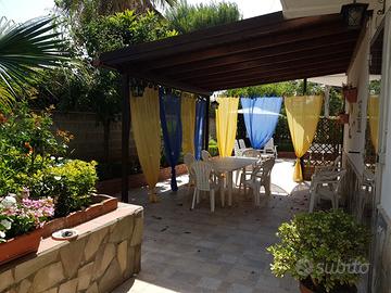 Villetta indipendente, adatta per due famiglie, ubicata a Fontane Bianche (Siracusa) a circa 200 metri dalla spiaggia e 500 metri dalla scogliera. Il piano inferiore è composto da salone con camino, climatizzato, ampio soggiorno, cucina abitabile, bagno. Il piano superiore due camere matrimoniali con lettino, climatizzate; cameretta con letto a castello con bagno in camera, climatizzata; bagno con doccia; veranda e terrazzo. L'esterno presenta una bella veranda con tetto in legno massello, bagno, doccia con acqua calda, barbecue in muratura + lavandino, forno a legna. La villa è recintata, con ingresso da cancello carrabile e posto auto. "Affitti minimo settimanali".