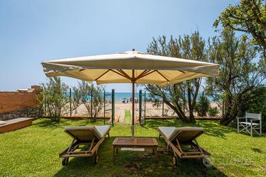La zona del parco ad uso esclusivo fronte mare dotata di ombrellone, lettini, spogliatoio con 2 zone doccia riscaldate oltre che due accessi privato al mare indipendente. La struttura è inoltre dotata di lettini, sdraio e ombrelloni per la spiaggia, oltre che due canoe , 2 SUP , un laser pico per appassionati velisti e canne da pesca