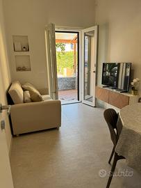 Villetta appena ristrutturata composta da zona giorno con cucina e divano letto, bagno con box doccia, camera matrimoniale, camera con due letti singoli, aria condizionata negli ambienti, giardino con area ristoro, salotto e doccia esterna.