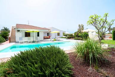 La Villa gode di una piscina privata a sale ad uso esclusivo e di un ampio spazio esterno attrezzato contorniato da piante ornamentali e aromatiche ideale per trascorrere momenti di pace e relax, che, al calar del sole si trasforma in un luogo suggestivo per trascorrere le serate estive.