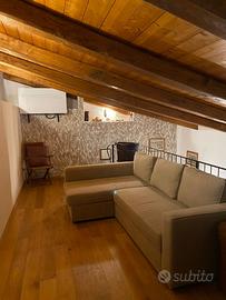 mansardato camera matrimoniale con bagno con doccia, soggiorno con divano letto e TV