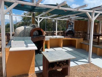 >Ampia zona barbecue con forno a legna,lavandino in marmo