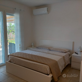 Si affitta a Maruggio/Campomarino villa con tre camere da letto con clima e smart TV,sala da pranzo attrezzata con clima e smart TV e divano letto,due bagni,area giardino attrezzato con tavolo, barbecue,doccia esterna, salottino,sdraio e ombrellone.