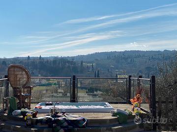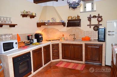 Dotazioni: Wi-Fi, forno a legna, barbecue, Tv sat, Jacuzzi, aria condizionata nelle camere da letto. La villa è immersa nel verde, circondata da ampi giardini e uliveti ben curati. Inserita su una terrazza in pietra si trova una Jacuzzi riscaldabile delle dimensioni 2 x 2,50 m con 3 posti seduti e 3 posti sdraiati attrezzata inoltre con cromoterapia a Led. La proprietà è completamente recintata.
