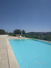 Villa esclusiva o singole camere in formula B&B, nelle Marche, tra mare e piscina a sfioro, dove è possibile tuffarsi nel blu del cielo, del mare e della piscina e nel verde delle nostre colline marchigiane.(max 16 persone con villa e depandance,12 in villa). Con ampio giardino di 4000 m,ed interni di 300 mq con sei camere, sei bagni, ampia sala da pranzo e cucina munita di tutto e Depandance con un altra camera cucina e bagno per gruppi più numerosi. A 1 km dal mare, vicinissimi al Monte Conero. Per info contattami al 3478418010.Marina.Grazie.