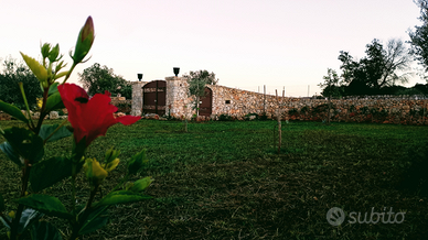 Sul retro si apre il giardino di 5000mq con piscina al sale interrata di 40 mq (h. 1.40) ad uso esclusivo degli ospiti, doccia esterna, barbecue, gazebo, lettini, sdraio e telecamere di videosorveglianza a circuito chiuso.
